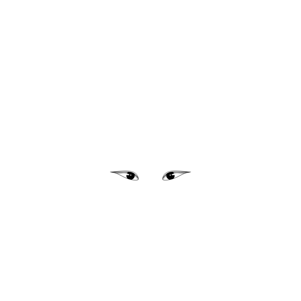 吊り上がった目細い目黒目