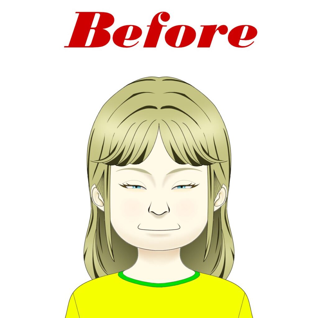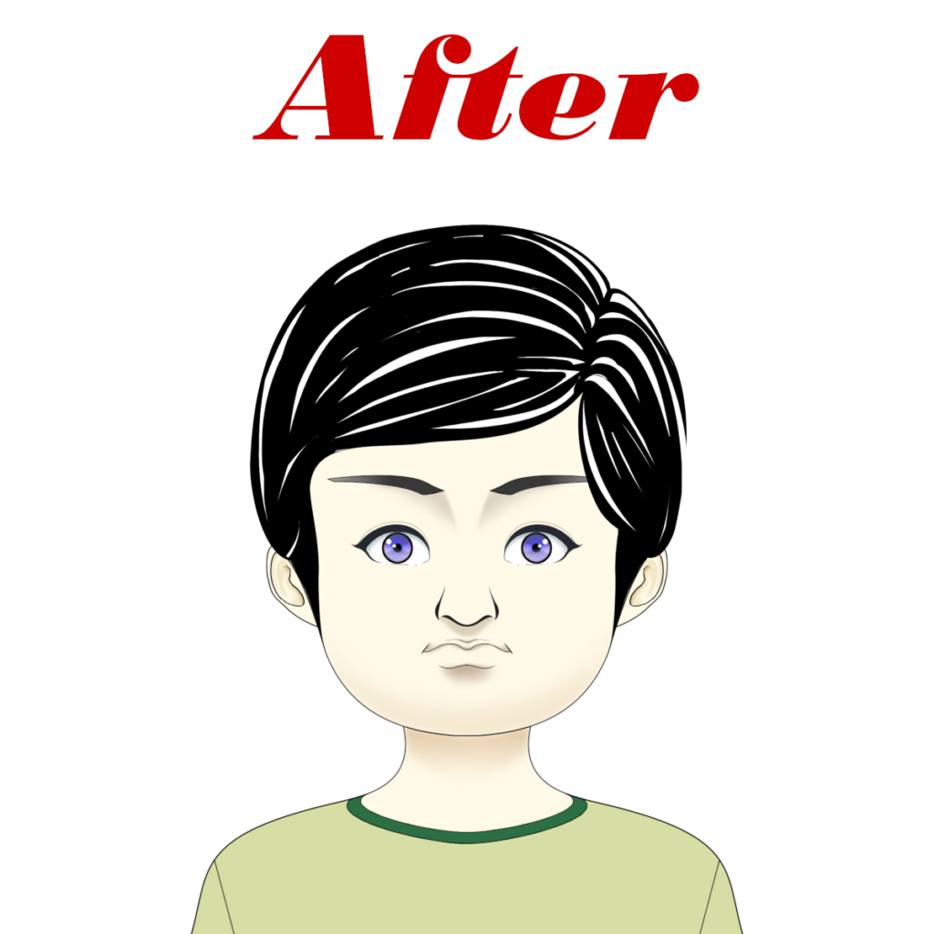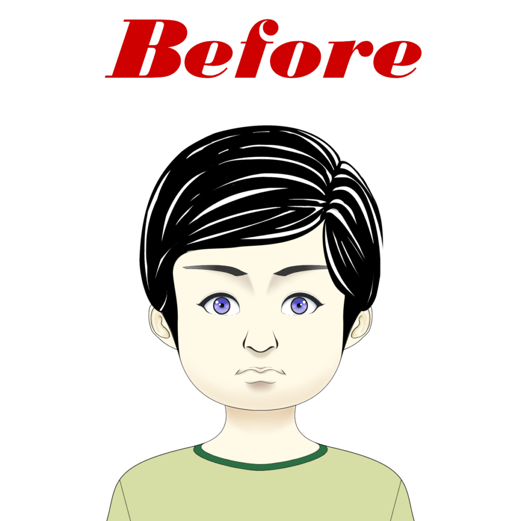 口のレイヤーを上にずらし、顎のスペースを広く取ることでシャクレ顎を表現。口が鼻と近づきすぎるようなら鼻も少し上にずらす。