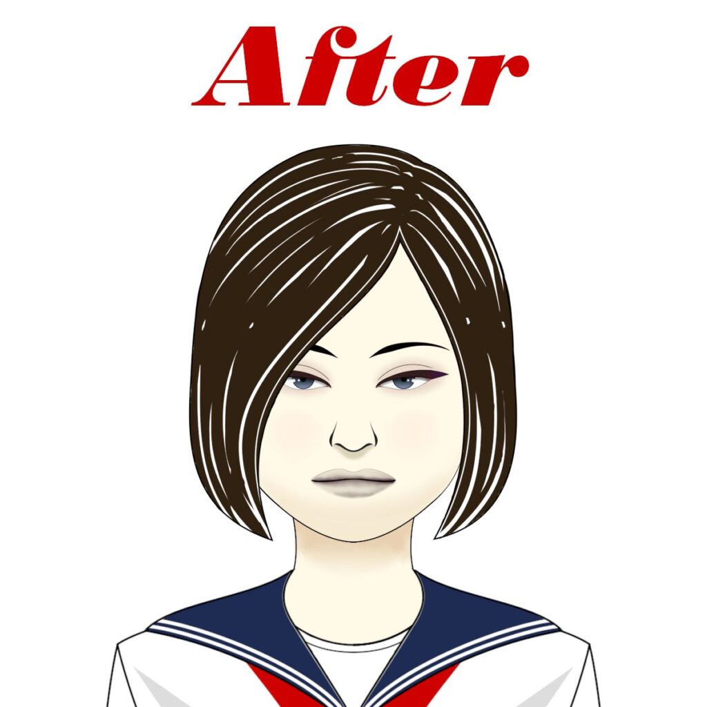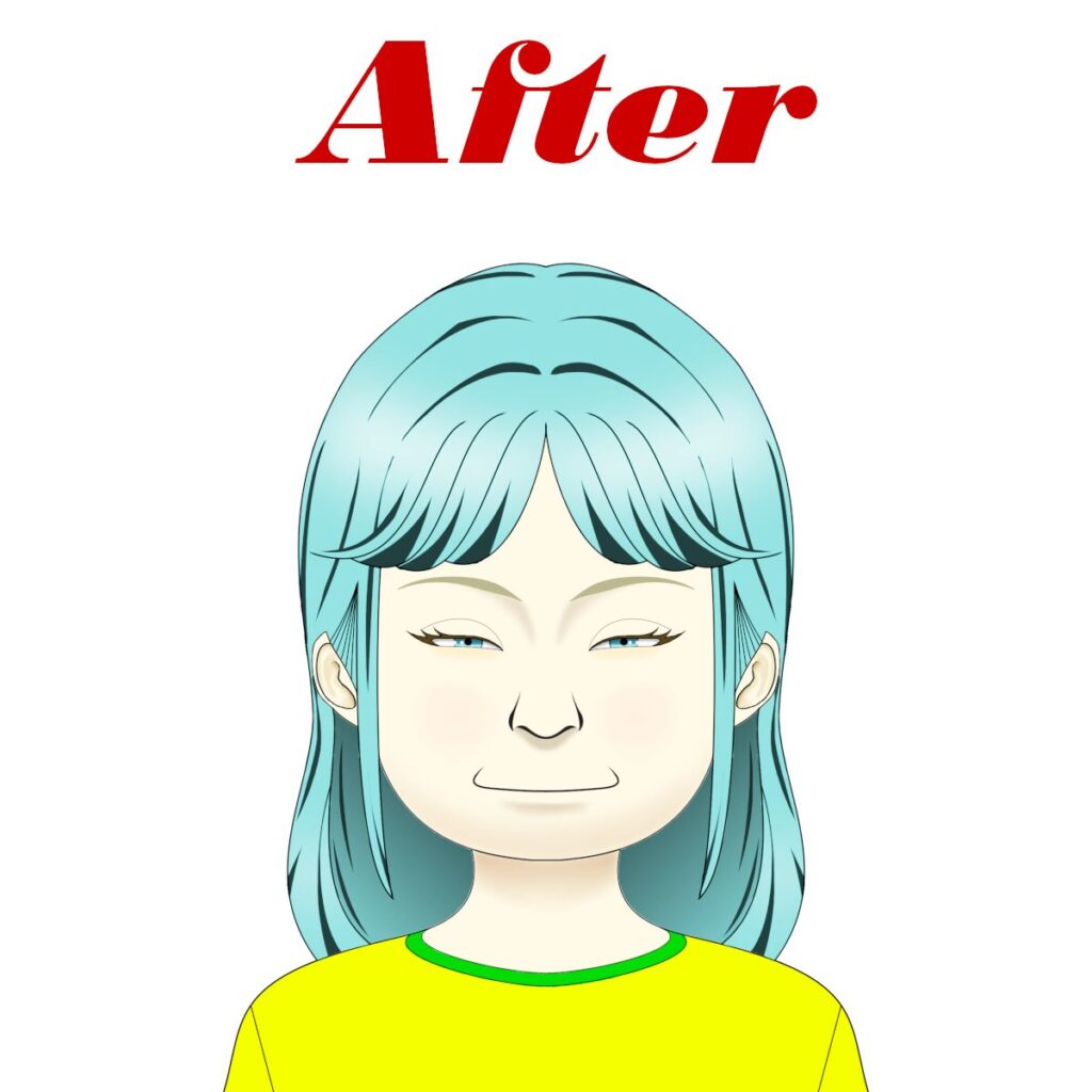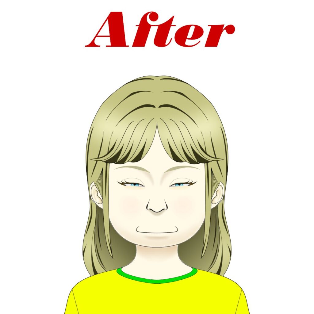 口のレイヤーを上にずらし、顎のスペースを広く取ることでシャクレ顎を表現。口が鼻と近づきすぎるようなら鼻も少し上にずらす。